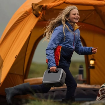 All portable power stations are meant to be kept dry as they are not waterproof, although protective jackets can be purchased to increase their protection. So always keep them within your awning or tent. Generally, they will only get warm when being on maximum charge and because all the leading manufacturers use the latest Lithium Iron Phosphate (LiFePO4) battery chemistry (as opposed to Lithium NMC) they are very stable and ultra safe to use.